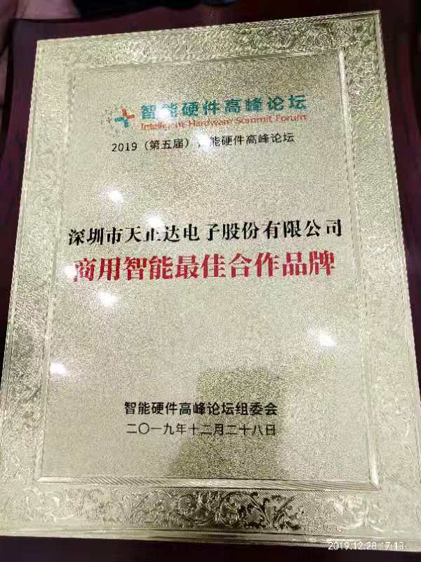 2019年12月28日,天正達(dá)應(yīng)客戶邀請(qǐng),有幸出席第五屆智能硬件高峰論壇,與眾多大咖歡聚一堂,并接受主辦方的榮譽(yù)獎(jiǎng)項(xiàng),天正達(dá)深感榮幸和自豪!